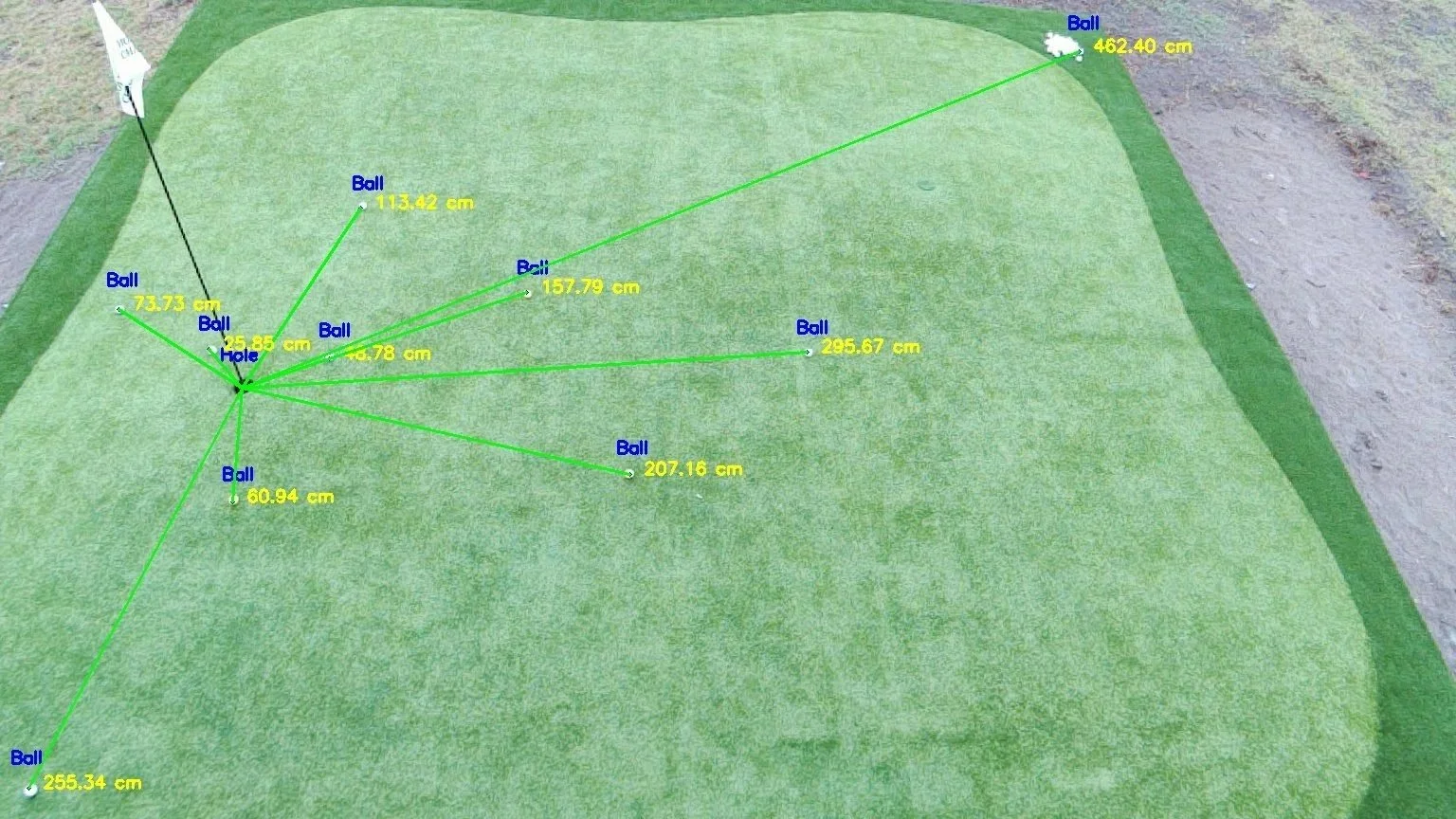 Measure the exact distance of every ball from the pin